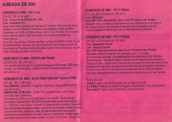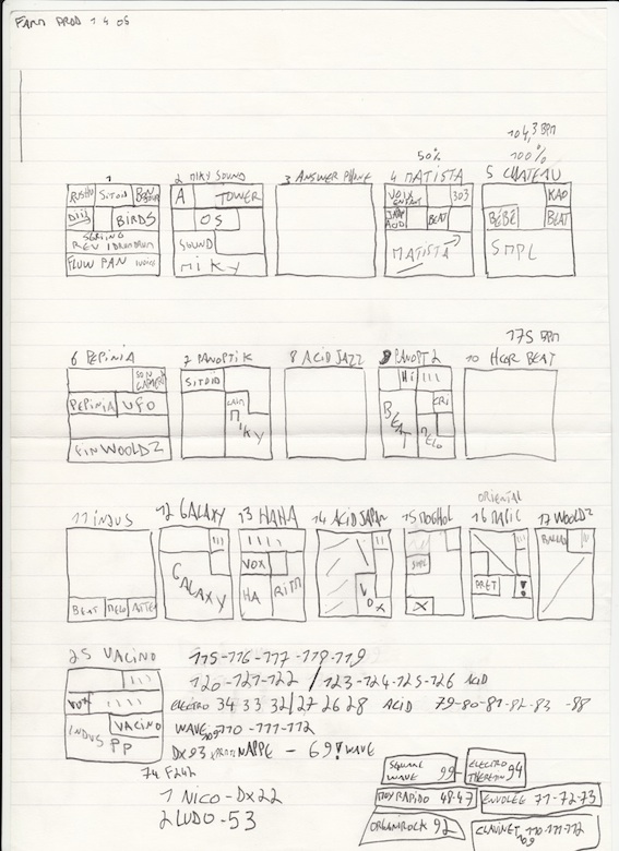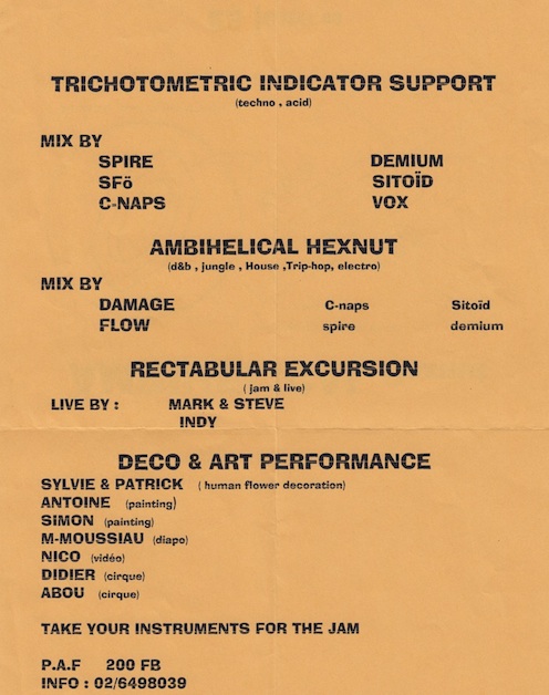 In the 90’s he organized many acid parties where his dynamic Acid House DJ sets mixed the sounds of the TR909 and TB303 with world music, new wave rock punk or contemporary classical music.