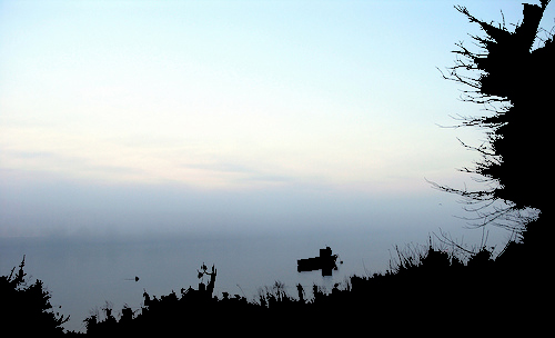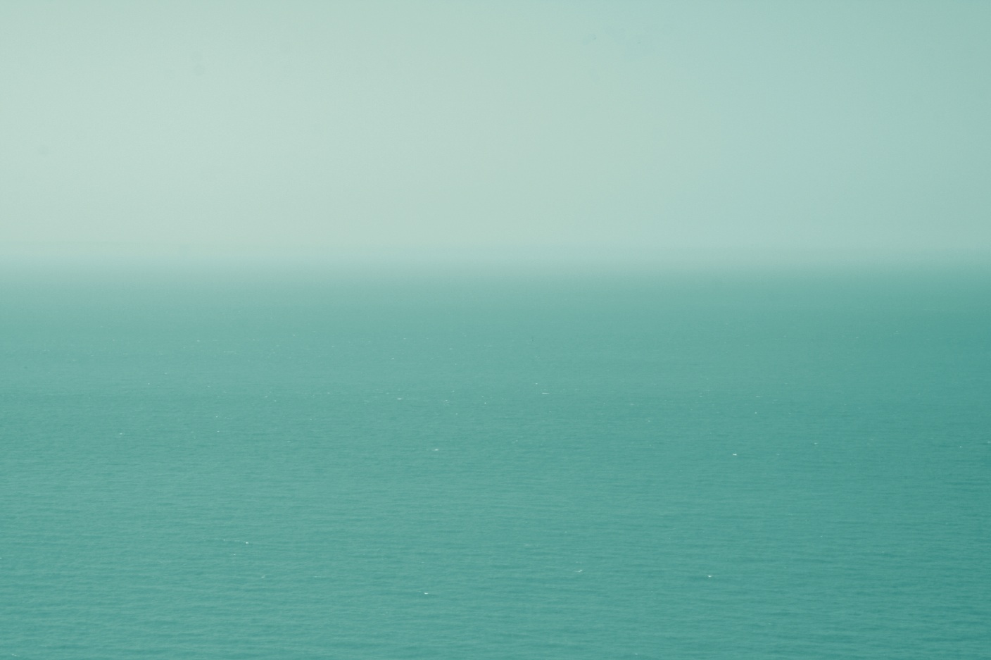 Ce jour-là le climat absorbe, l’eau l’air le vent la lumière tout conjoigne en une matière dense et épaisse. Les limites disparaissent au profit d’une zone indéfinie, un no man’s land, un trouble, une brume d’idée. La ligne d’horizon s’efface, comme si tellement proche de lui, il devenais la ligne. En son antre, il devient l’horizon.