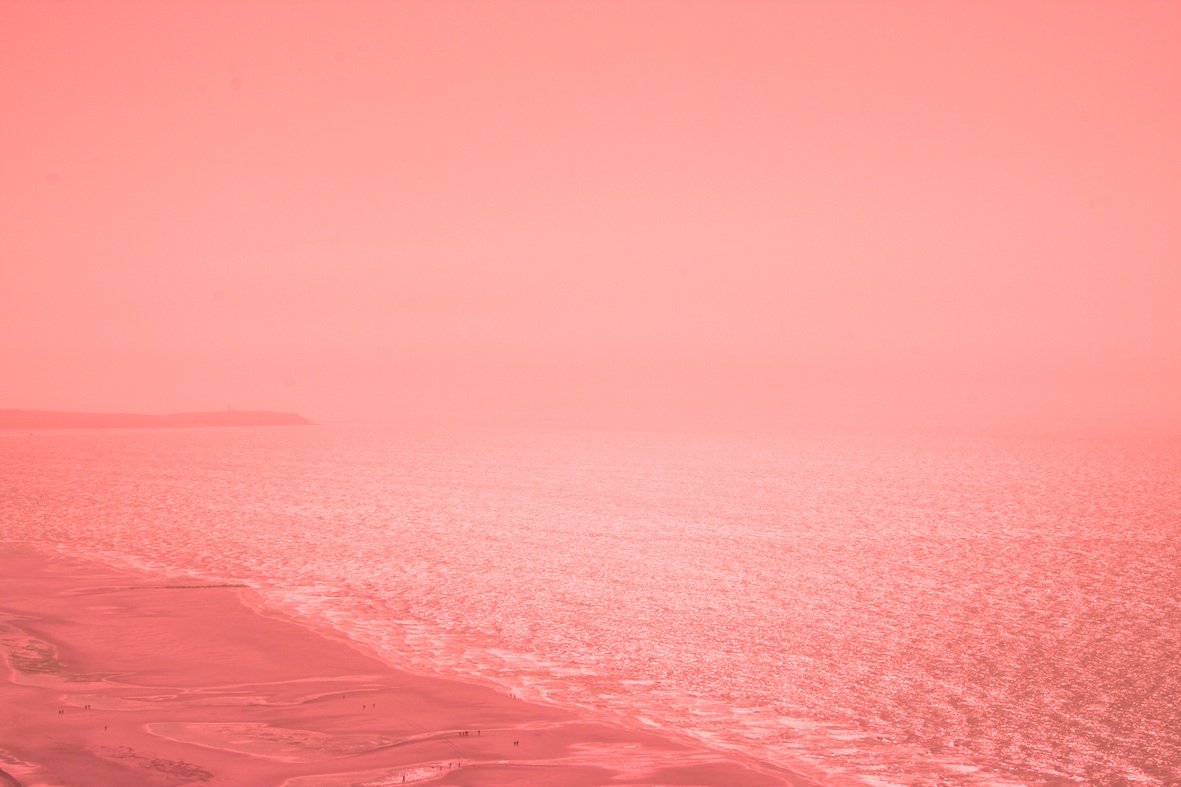La marée est basse, le magnifique sous-sol marin est à l’air. Pas d’horizon, tout se confond en un blanc bleu gris brumeux sans brume. Une fusion des éléments, dans laquelle, l’homme disparaîtra.