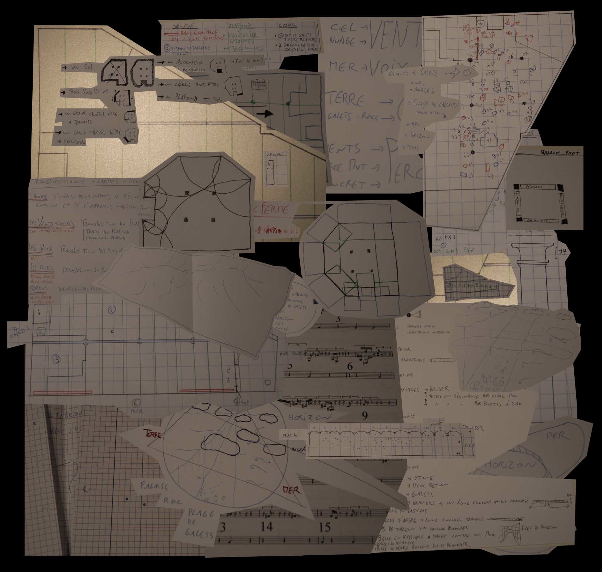 Dieppe, petite ville française du bord de mer, de grandes plages de galets triés naturellement du plus grand au plus petit, de hautes falaises blanches de calcaire. Un sol marin de calcaire, de petites boulettes de calcaire, un vent. Une solitude hors des périodes touristiques.